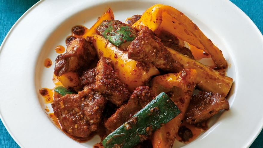 コウ ケンテツ 430kcal 20分 豚肩ロース肉、パプリカ、ズッキーニ、砂糖、酒、他