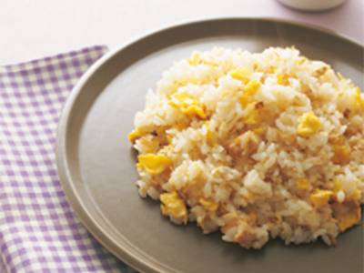 ほんのり甘くて懐かしさを感じるチャーハンです。粉チーズや目玉焼きをのせてもおいしくいただけます。