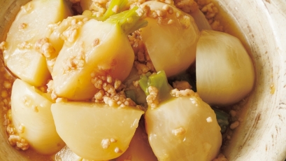 とろみをつけた煮汁がかぶにからみ、そぼろのうまみがなじみます。小さめのフライパンで煮ると煮くずれを防げます。