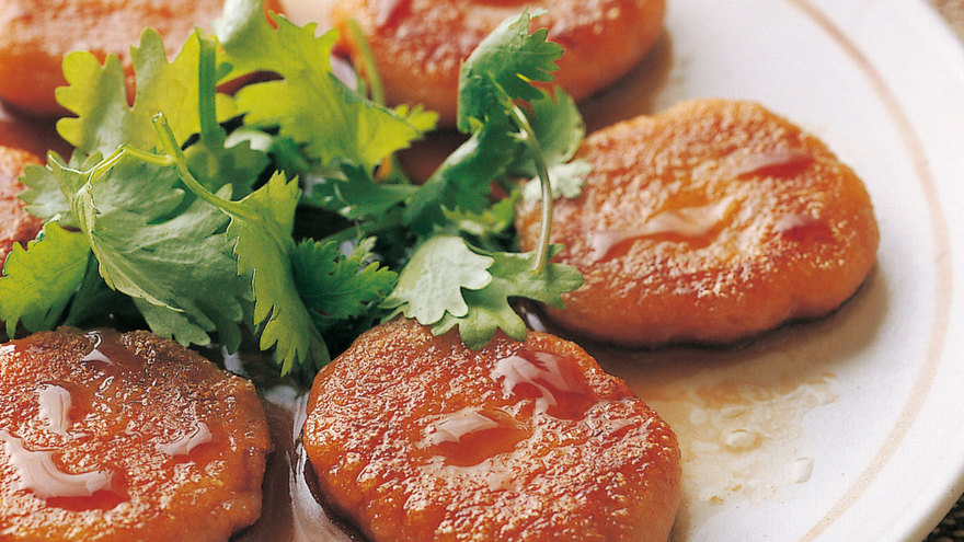 にんじんとじゃがいもをすりおろしてつくります。表面はカリッと、中はモチモチに焼き上げます。