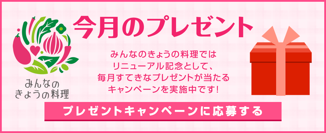 そしてこの秋、「おいしいレシピを見つけよう。」をキャッチフレーズに、より使いやすく見やすく、リニューアルをしました。これを記念して、毎月抽選で素敵なプレゼントが当たるプレゼントキャンペーンを実施中です!ぜひご応募お待ちしております!