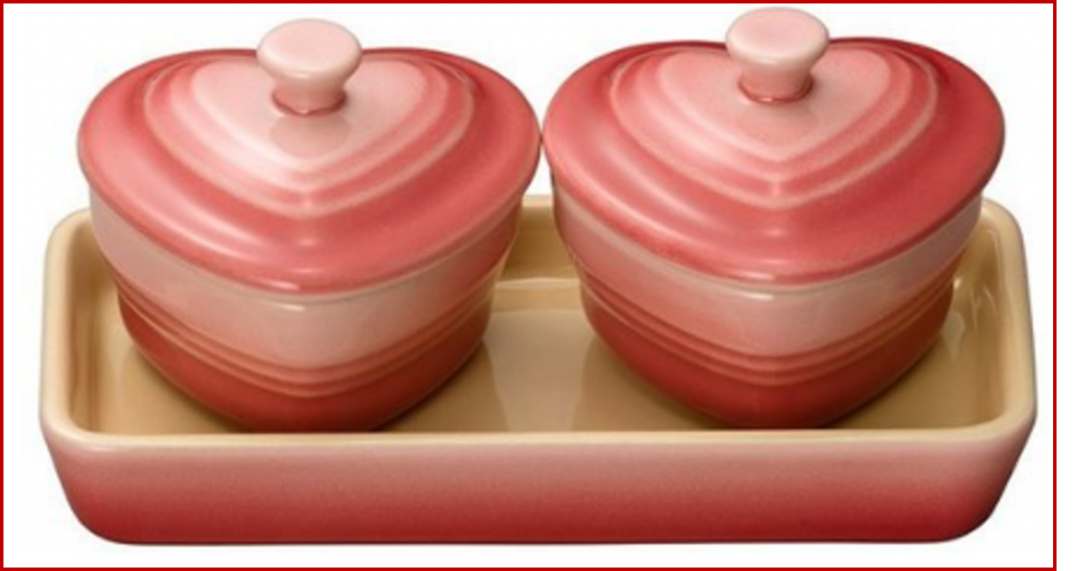 ル・クルーゼのストーンウェア人気アイテム「プチ・ラムカン・ダムール・セット」です。調味料を入れて食卓に出したり、アクセサリー入れとしてインテリアのアクセントとしてもお楽しみいただけます。