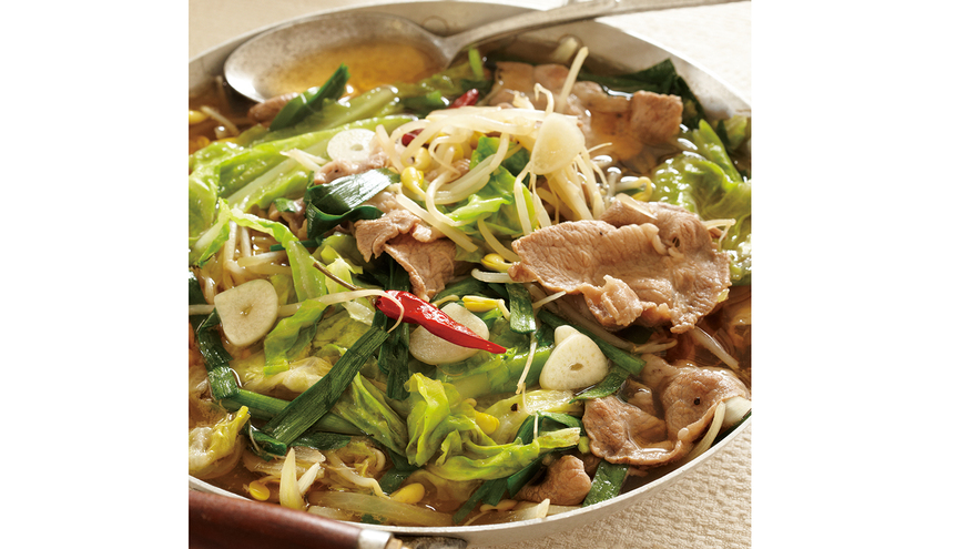 材料を重ねて煮るだけのお手軽料理です。韓国では、夏にこそ熱い料理を食べて、夏バテを予防、解消します。豚肉は煮汁にうまみを出す分と、肉自体のうまみを味わう分と、2回に分けて入れるのがポイント!