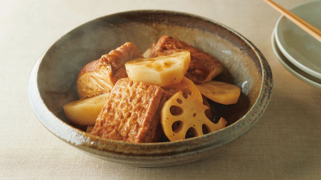 れんこんや厚揚げは大きく切れば、十分満足できる主菜に。
