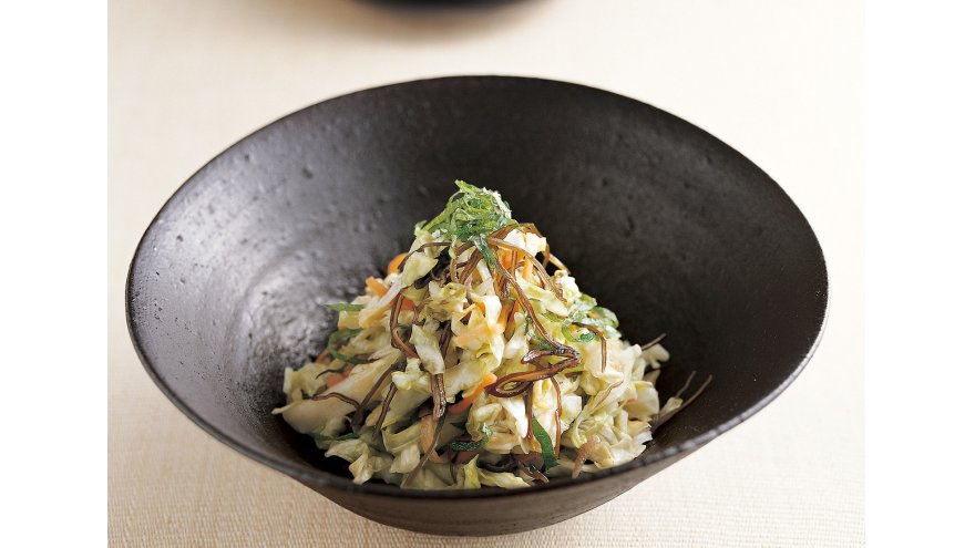 せん切り野菜と切り昆布を浅漬けにするので、「切り漬け」。漬ける時間は短くても、昆布のうまみで美味しい仕上がり。