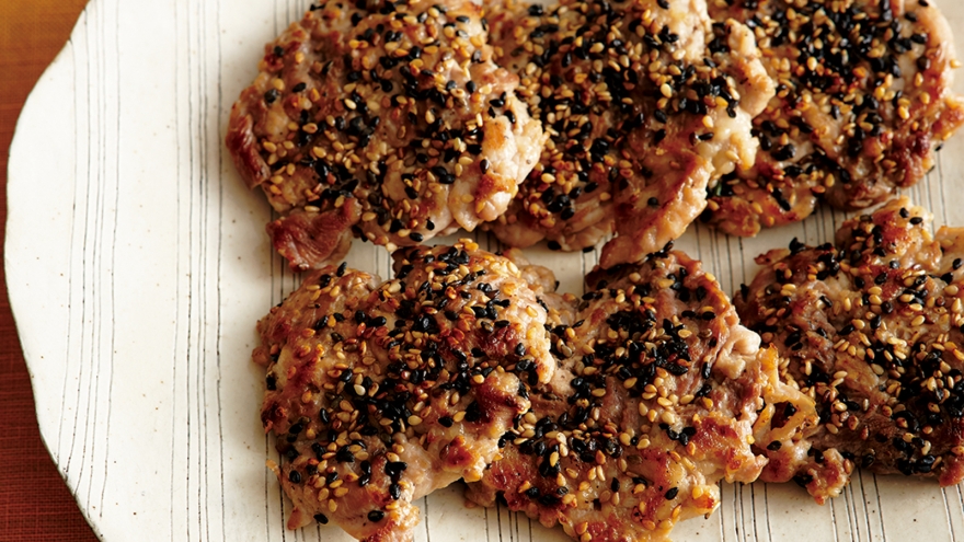 50gのしょうがを使い、にんにくもたっぷりで、まさに「パンチ」のきいた味。切った豚肉は、意外にたくさん食べられます。シャキシャキの青じそとキャベツがさっぱりとした箸休めに。