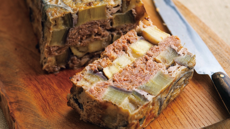 ちくわとゆでた野菜、塩ざけを容器にギュッと詰めてゼリー寄せに。モザイクのような断面がユニークです。節約食材でつくったとは思えないごちそう風の一皿。