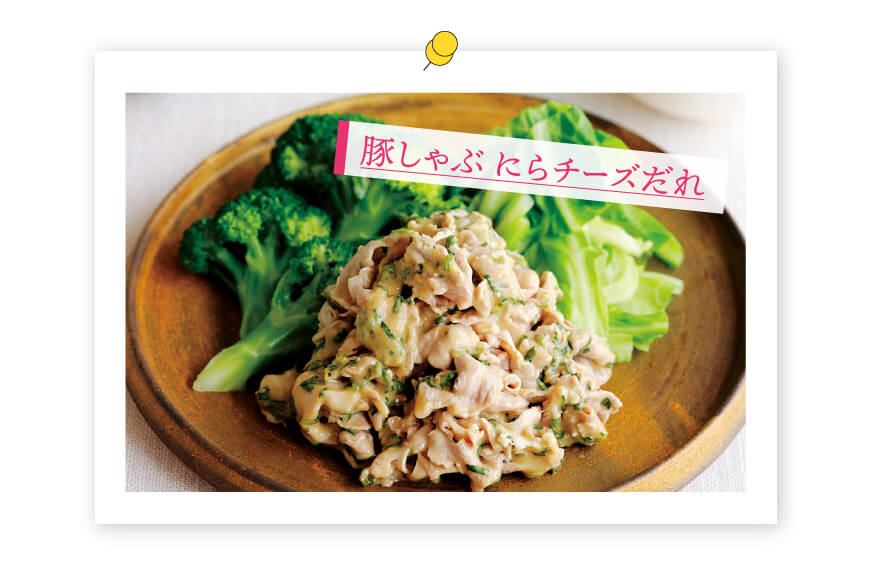 明日香このレシピは、レミさんの『にらだれ』をアレンジしました。にらには辛みがあるけどチーズを加えたらマイルドになって、子どもが食べやすい味になりました。ゆで野菜のディップやソテーのソースにもおすすめです。