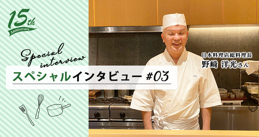 15周年スペシャルインタビュー企画。第3回は、日本料理店総料理長 野﨑洋光さん(以下=野﨑)のスペシャルインタビューをお届けします。