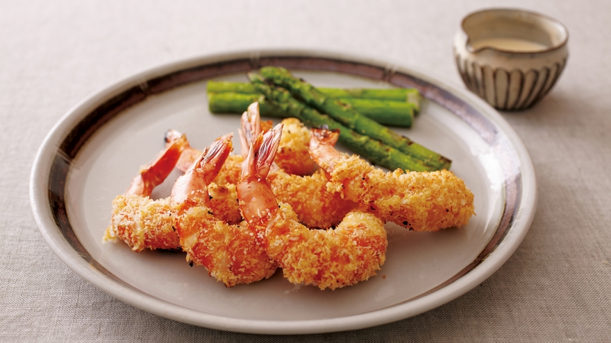 武蔵 裕子 230kcal 10分 えび、グリーンアスパラガス、溶き卵、小麦粉、水、他