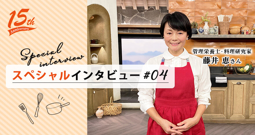 15周年スペシャルインタビュー企画。第4回は、管理栄養士で料理研究家の藤井恵さん(以下=藤井)のスペシャルインタビューをお届けします。