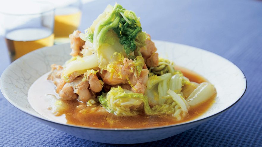骨付き肉のうまみたっぷりの煮汁で、白菜がトロトロになるまで煮込みます。たった2つの食材で、驚くほど豊かな味わい。仕上げの柚子(ゆず)で、旬の香りも楽しみましょう。