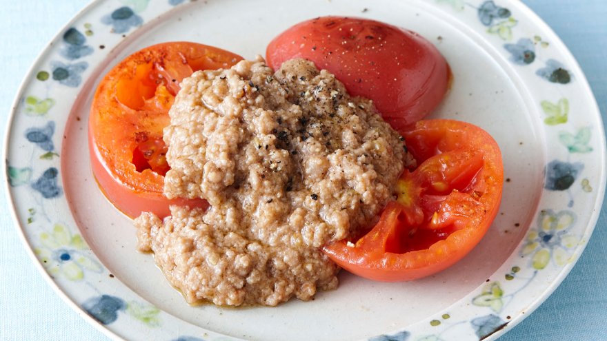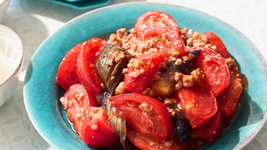 トマトの大量消費におすすめの、栄養もおいしさもたっぷり詰め込んだおかず。トマトとなすをトロッと柔らかなそぼろ煮に。一口食べれば、トマトの甘みと酸味が口の中に広がります。