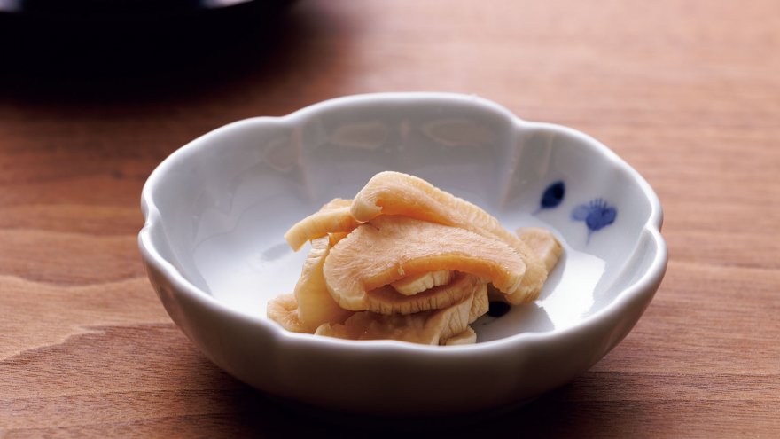 手仕込みのたくあんは、味も見た目も市販のものとは異なる趣です。大根が内に蓄えた甘みと水けが程よく残り、シャクッとした食感に。心を込めて仕込めば、多少不格好でも味わい深いお漬物になります。