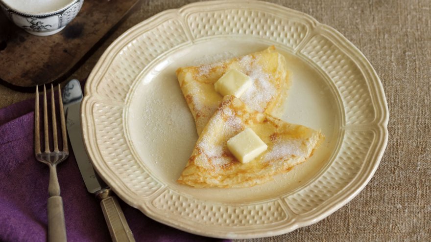 クレープは、フランスの家庭の代表的なおやつ。「クレープの日」があるほど愛されています。食べ方はいたってシンプルで、シュガーバターが定番。フランスでは華美なトッピングはしないで、生地の素朴な味わいを楽しみます。