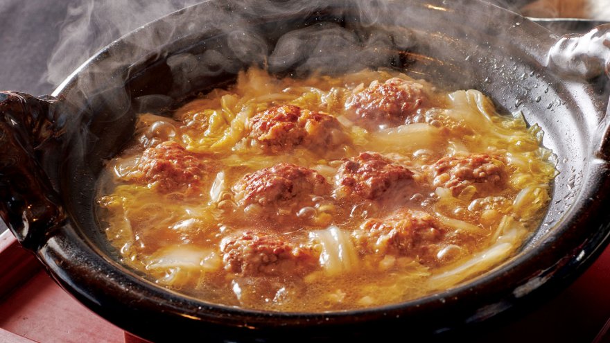 肉のうまみを吸いながら、トロトロになるまでじっくりと煮込んだ白菜が絶品!白菜は手でバリバリとちぎって、味をしみやすくします。肉だんごはふんわりと柔らかく、白菜の軸の食感がアクセント。