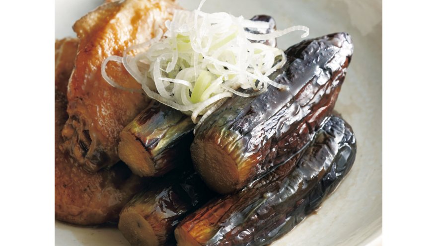 フライパンでなすと手羽先をこんがり焼き、そのまま煮るから簡単です。なすが柔らかくなるころには、手羽先のうまみと甘辛味がしみ込んでおいしくなります。