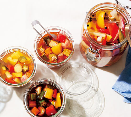 さわこさんのおすすめレシピ「夏野菜のミックスピクルス」のレシピはこちら