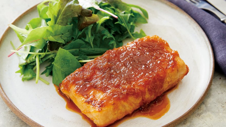 長方形に切った大根に豚肉を巻きつけて、ボリューム満点に。大根は下ゆでしてあるので、みずみずしくジューシーです。本格的なソースも相まって、まるでステーキみたい!