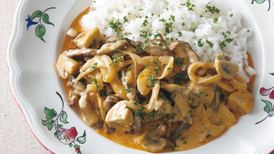 ロシアのごちそうは、人気のビーフストロガノフとさっぱり味のピクルス。