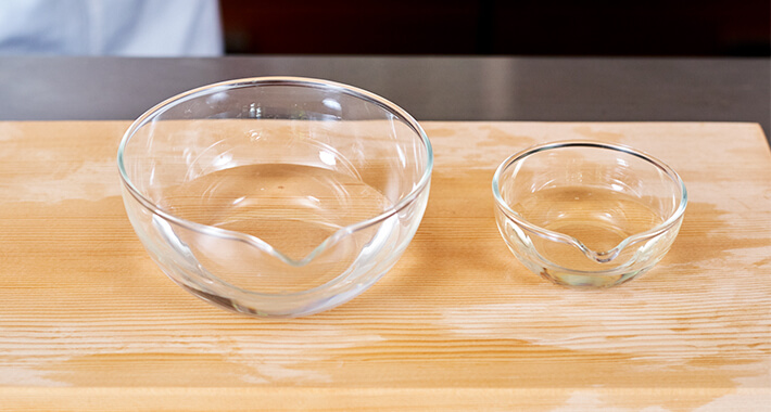 水と酒を合わせたもの。煮汁を濃いめにし、煮る途中でこれを加えて味を調節するのが、関東の料理で使う手法です。