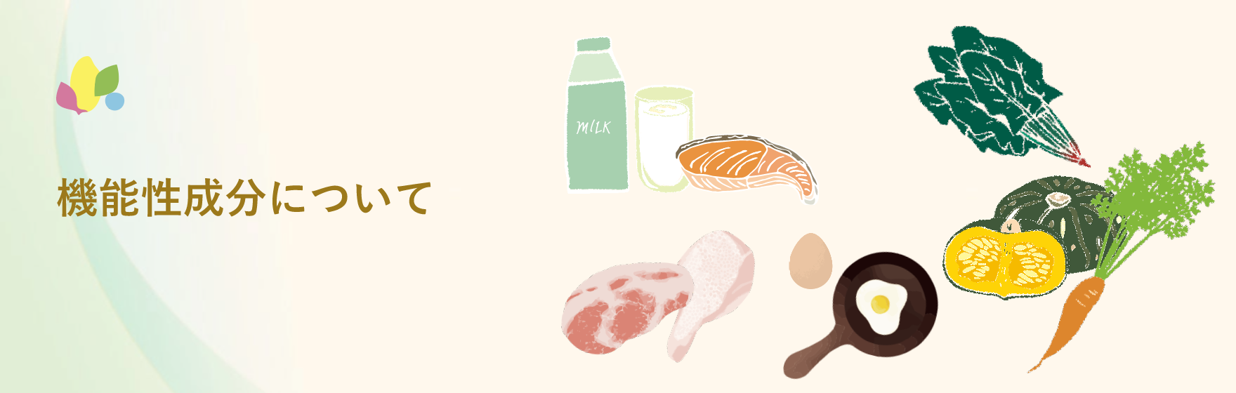 機能性成分とは、食物に含まれる栄養素のうち、生体調節機能に関係する食品成分のことで、健康を維持したり、有害物質の作用を緩和するなどの様々な機能的効果が期待されているものです。
