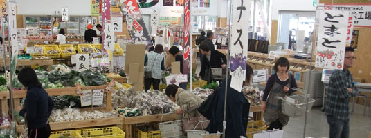 毎朝、とりたての新鮮な野菜や、つくりたての惣菜・お菓子類を農家の皆さんが直接店頭に並べているから安全・安心。野菜には生みの親・生産者表示つき!