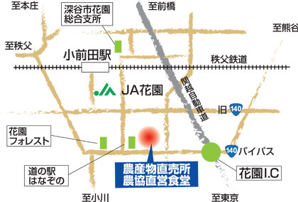JA花園農産物直売所は関越自動車道の花園インターチェンジすぐそば、練馬ICからわずか40分、東京都心から70㎞圏内と交通アクセスに恵まれた農産物直売所です。全ての生産者履歴で管理されていますので、安心して美味しく召し上がっていただけます。新鮮な「朝採り野菜」をお買いものされてみてはいかがでしょうか。