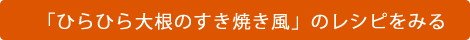 大根は縦半分に切ってピーラーで削ります。「こうすると煮えるのが早いし、たくさん食べられます。すき焼きに大根を使うのは、めずらしいですよね、新定番にしてくださいね。」