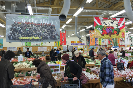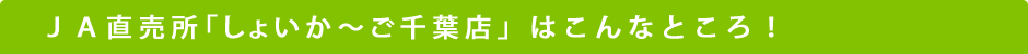 千葉県内最大級の農産物直売所「しょいか~ご千葉店」は、いつも開店前から安全で新鮮な野菜を求めて行列の絶えない人気の直売所です。売場では農家の食卓に並ぶような地元農産品をお買い求め頂けます。