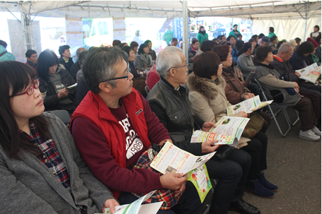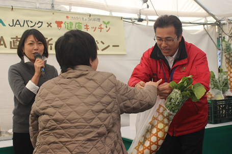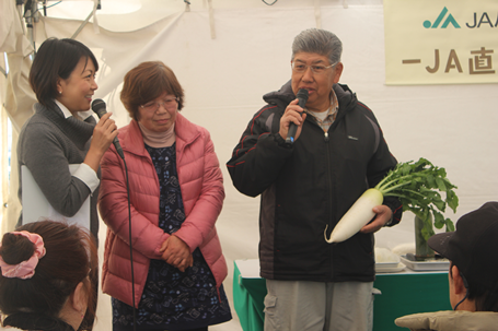 お楽しみの抽選会では、来場者の中から各回20名様に、鈴木さん夫妻が生産した大根と地元産のほうれんそうがプレゼントされました。