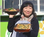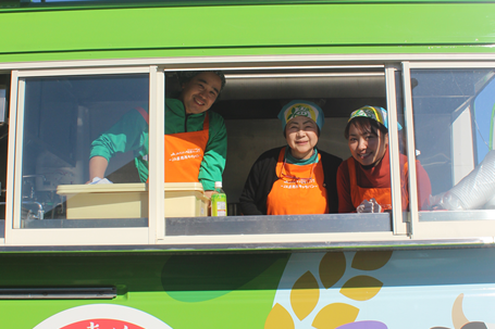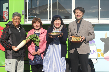 キッチン設備の整ったキャラバンカーで、地元生産者の鈴木さん夫妻が生産した大根を使って、「ひらひら大根のすき焼き風」がつくられ、来場者にふるまわれました。「大根のすき焼きは、めずらしい!」