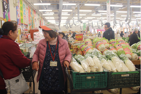 「ほぼ毎日、直売所に野菜を届けています。直売所に来ることで、ほかの生産者の方とも会えて話ができるのも楽しいです。」と道子さん。お客さんにも、「鈴木さんの大根のファンですよ。」「ちぢみほうれんそう、今年も待ってるよ。」と声をかけられ、励みになっているそうです。