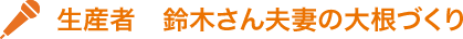 鈴木義信さん道子さん夫妻は、千葉市富田町で大根やちぢみほうれんそうを中心に生産しています。