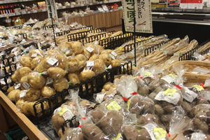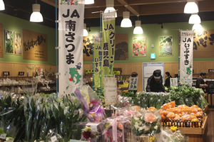 「約1800名の農家さんが、とれたての野菜を届けてくれます。月に2回開催する青空市も好評で、朝からたくさんのお客様が訪れます。また、鹿児島市は切り花の消費量が全国第一位。直売所には、お供え用の花もたくさん並んでいます。地元の農業高校の生徒がつくった加工品なども人気です。」と田中統括マネージャー。