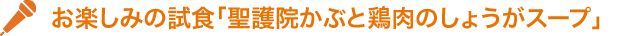 お楽しみの試食「聖護院かぶと鶏⾁のしょうがスープ」