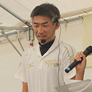 来場者に抽選で20名様にとうもろこしとトマトがプレゼントされました。プレゼンターは、あづみ農業協同組合 代表理事組合長の千國茂さん。