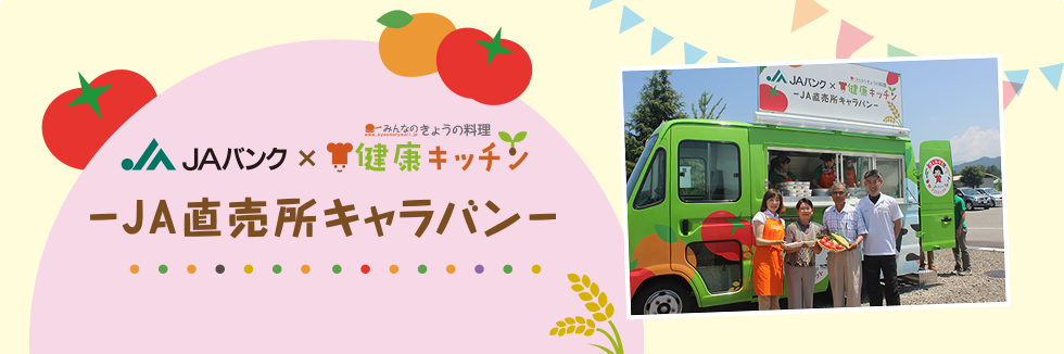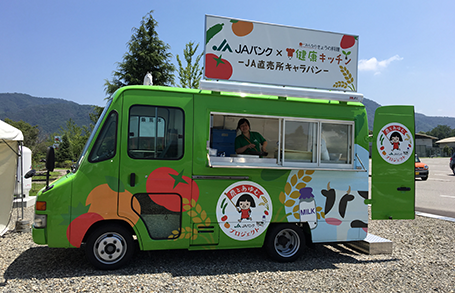 暑い夏、景色美しい安曇野のJA直売所で行われた、健康キッチン直売所キャラバン。