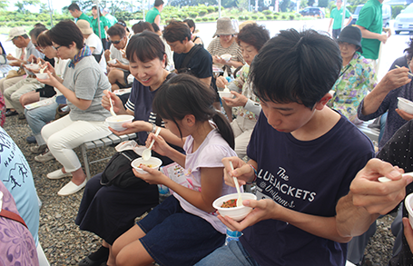 - 試食用の料理は、キッチン設備の整ったキャラバンカーでつくられ,来場者に配られました。