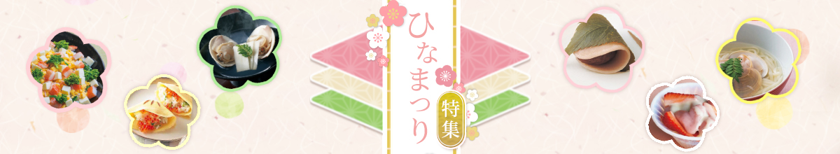 ひなまつりの食卓に彩りを添えるレシピ集です。ちらし寿司やお吸い物、スイーツ等、旬の食材を使った料理をお楽しみください。