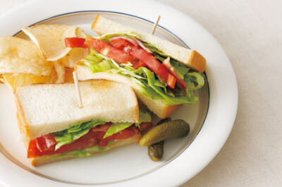 ベーコン、レタス、トマトの頭文字をとったサンドイッチ。カリカリベーコンのうまみと野菜のみずみずしさが絶妙のバランスです。