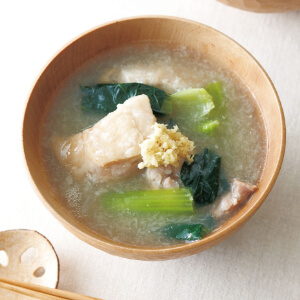 すりおろしたれんこんを入れると煮汁がトロトロに。鶏肉、小松菜入りで栄養のバランスも抜群のおかず汁です。