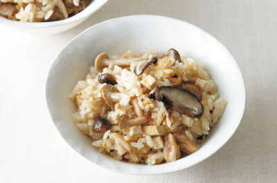 きのこの風味が口いっぱいに広がる炊き込みご飯。鍋で炊くので香ばしさも楽しめます。きのこに下味をつけておくのが、味をしっかりなじませるコツ。