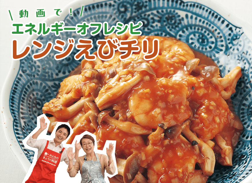 エネルギーオフにおすすめの「レンジえびチリ」のつくり方を動画でご紹介します。出演は髙城順子さん、助手は俳優の木戸大聖さんです。