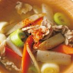 すりおろしたれんこんを入れると煮汁がトロトロに。鶏肉、小松菜入りで栄養のバランスも抜群のおかず汁です。