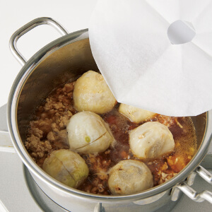 里芋やじゃがいもは、ホクホクとした食感が魅力。大きめに切ってじっくり煮ると持ち味を発揮できます。気をつけたいのは、中までしっかり火を通すこと。火加減が強いと表面は煮えているのに、芯の部分が堅く、ジャリッとした食感になることも。火加減やふたのかけ方などレシピどおりに煮ることがおいしくつくる秘けつです。里芋を電子レンジにかけるときも、竹串を刺して中まで柔らかくなっているかチェックしましょう。