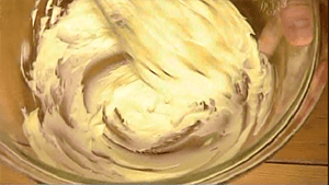 3. 発酵を待つ間に、常温にしたバターを泡立て器でほぐす。