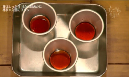 プリンカップの底にスプーン1杯くらいずつ流し、冷ましておく。