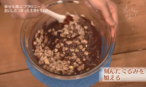 ぎっしり食べ応えあるブラウニーにするため、ベーキングパウダーを使わないレシピです。