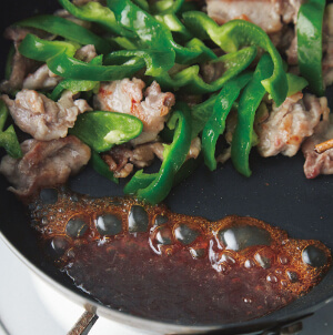 ひとりごはんに欠かせないのが、パパッとできる炒め物。短時間で仕上げたほうがおいしいので、調味料はあらかじめ混ぜ合わせておきましょう。そうすれば、慌てずにタイミングよく味つけができます。炒め物といえば強火のイメージがありますが、直径20cmのフライパンを使う場合の火加減は中火で十分。強火にすると炎がフライパンの側面に当たり効率よく加熱できません。